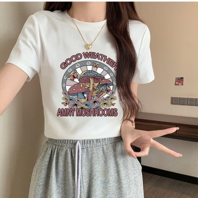 티셔츠 짧은팔 여름 하이-웨이스트 짧은 허리를위한 티셔츠