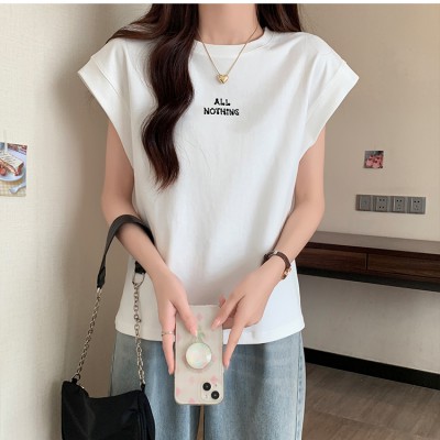 여성 티셔츠 여름 여성을위한 새로운 회전자 슬리브 인쇄 티셔츠