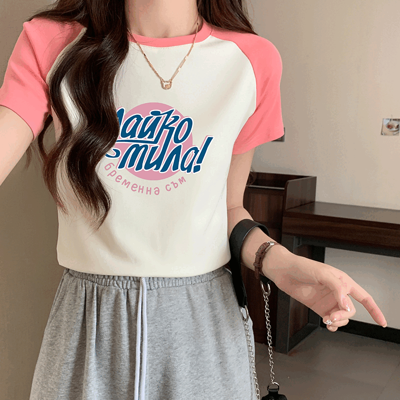 티셔츠 짧은 슬림 티셔츠 여름 장식 디자인 달콤하고 매운 짧은 탑