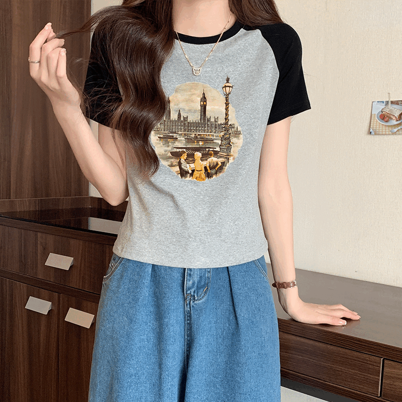 여자를위한 티셔츠 짧은 슬림 한 여름 디자인 작은 슬림 짧은 캐주얼 탑