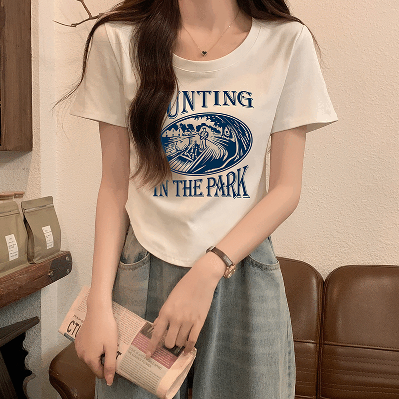 고급 곡선 밑단 짧은 슬림 하이 웨이스트 핫 소녀 탑을 가진 여성을위한 다목적 직선 어깨 단축 티셔츠