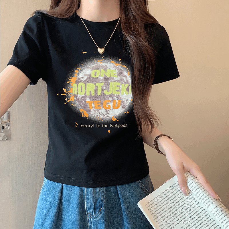 여름 디자인에서 여성을위한 프린트 숄더 짧은 슬리브 티셔츠 작은 짧은 티셔츠