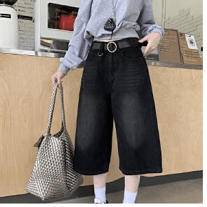 여성의 새로운 하이 웨이스트 느슨한 세척 넓은 레그 직선형 미드 파견을위한 실제 미국 레트로 블랙 데님 바지
