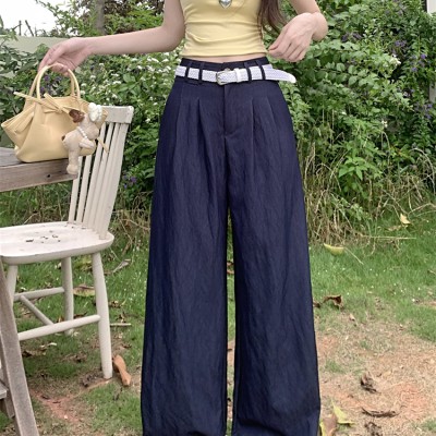 아이스크 실크 와이드 레그 캐주얼 바지를위한 새로운 하이 웨이스트 슬리밍과 드레이프 똑바로 다재다능한 바닥 바지
