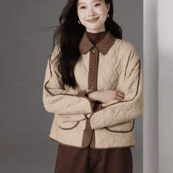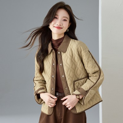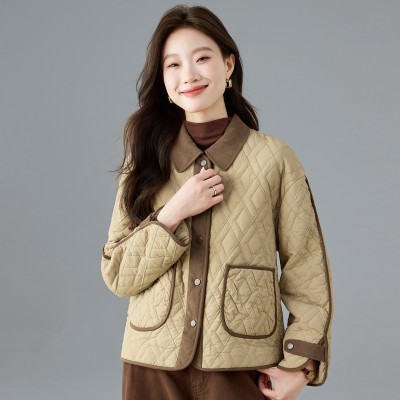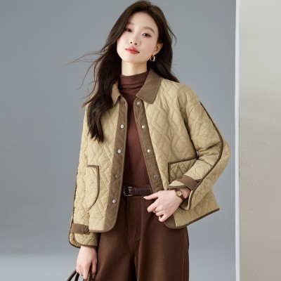 여성 의류 미니멀리즘 루즈핏 관대 한 얇고 가벼운 폴로 칼라 캐주얼 패치워크 색상 면 옷 면 의류 겨울 새로운 보온 맨위 재킷