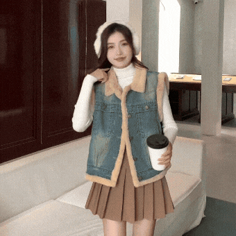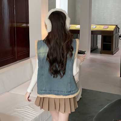 두꺼운 카우보이 조끼 목화 의류 여자 가을과 겨울 한국어 버전 느슨한 여가 따뜻하게 지내라. 플러스 벨벳 외투