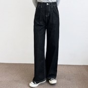 여성 핀턱 넌페이드 핏 와이드 데님 팬츠